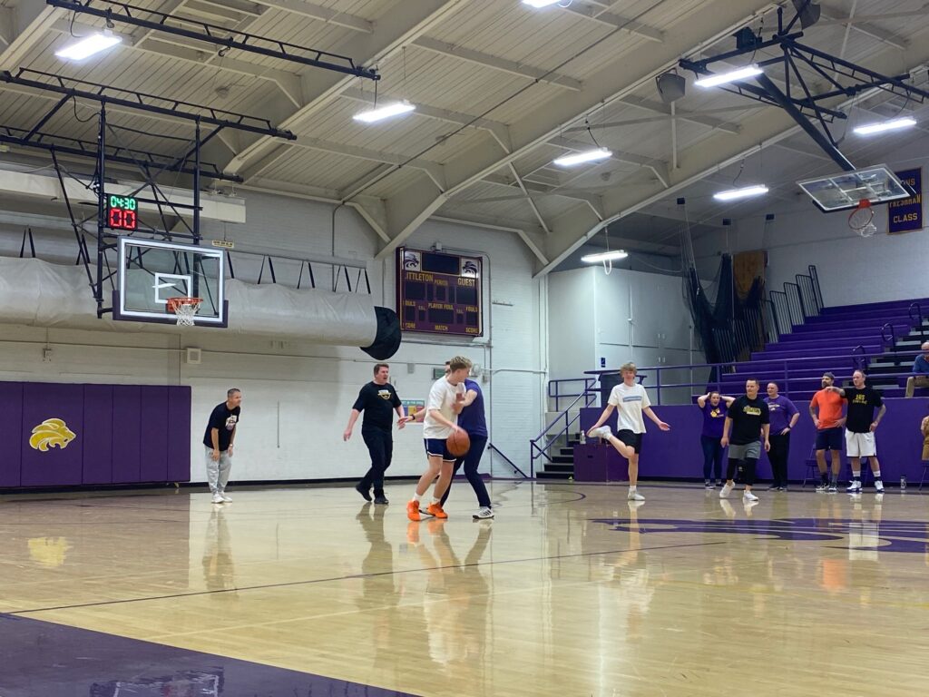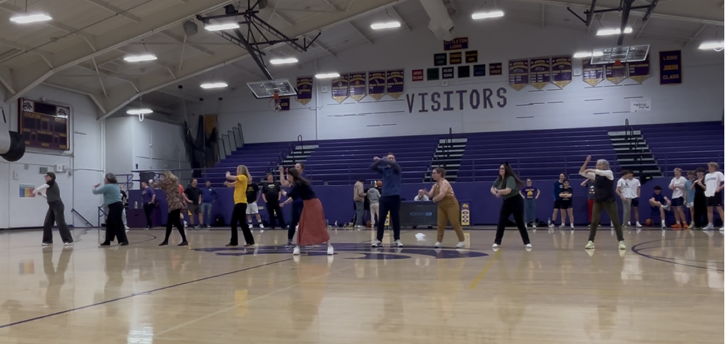 At halftime, teachers (some players and some spectators) performed their dance to Justin Timberlake’s song, “Can’t Stop the Feeling,” adding a fun performance to the fierce game. Students from the crowd also got to participate in halftime, playing a very competitive game of knockout.
