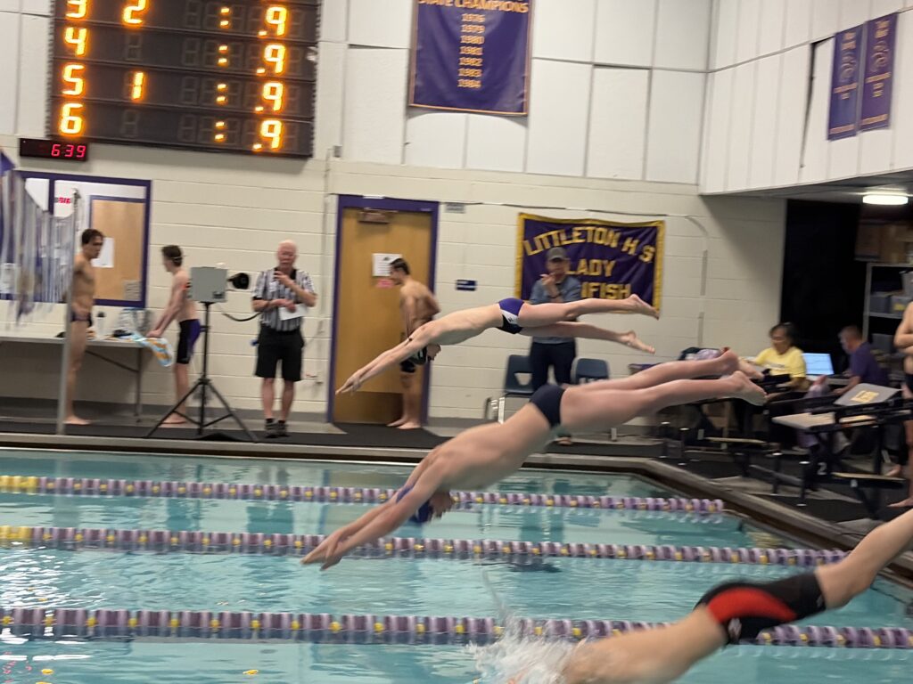 “They all showed up for each other, and we all took first and second and almost all the events, which it’s good to also win events, but it’s also good to show up for your teammates.” said Senior Thatcher Crull who was awarded the best score in the diving portion of the meet and took home 2nd in the 500 freestyle behind Littleton freshman Eli Morris.