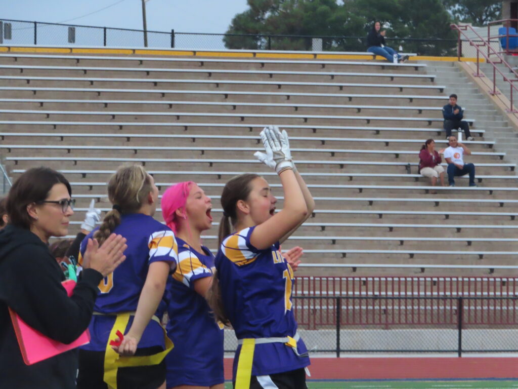 This past Monday, the LHS Girls’ Flag Football team participated in the Broncos’ Girls’ Flag Football Jamboree at LPS Stadium. Four teams participated in the jamboree: Golden, Highlands Ranch, Wheat Ridge, and LHS. Three Denver Broncos cheerleaders and a couple alumni were also in attendance, and were available to take pictures with and get autographs. Additionally, the three Lombardi trophies were set up for pictures.