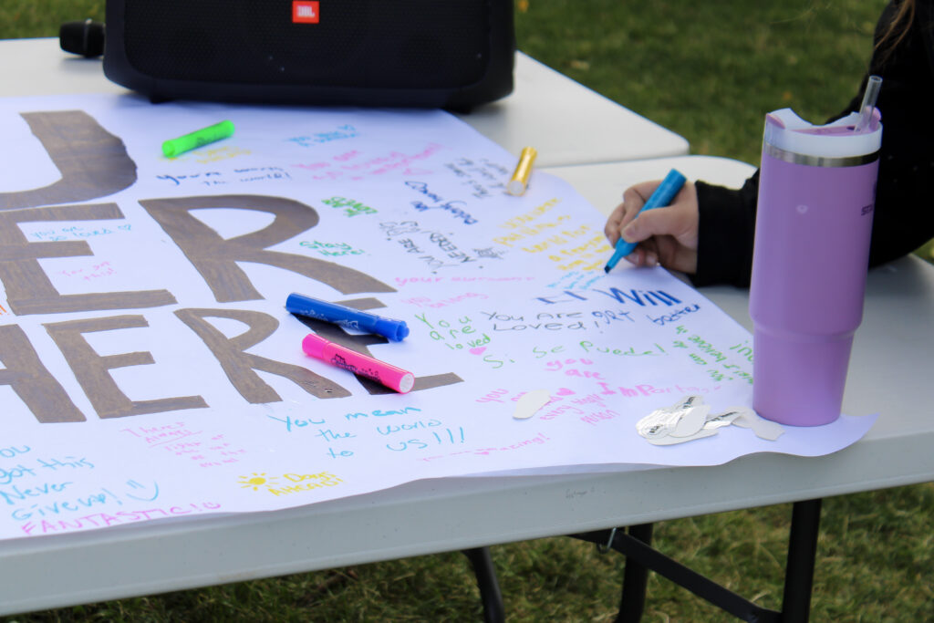 Students had the opportunity to write kind and encouraging messages on a large sheet of paper, in order to give individuals who may be struggling with mental health some positive motivation. In return, students got a free popsicle, bracelets, and had the chance to meet the many mental health support staff at LHS who are here to help any student.