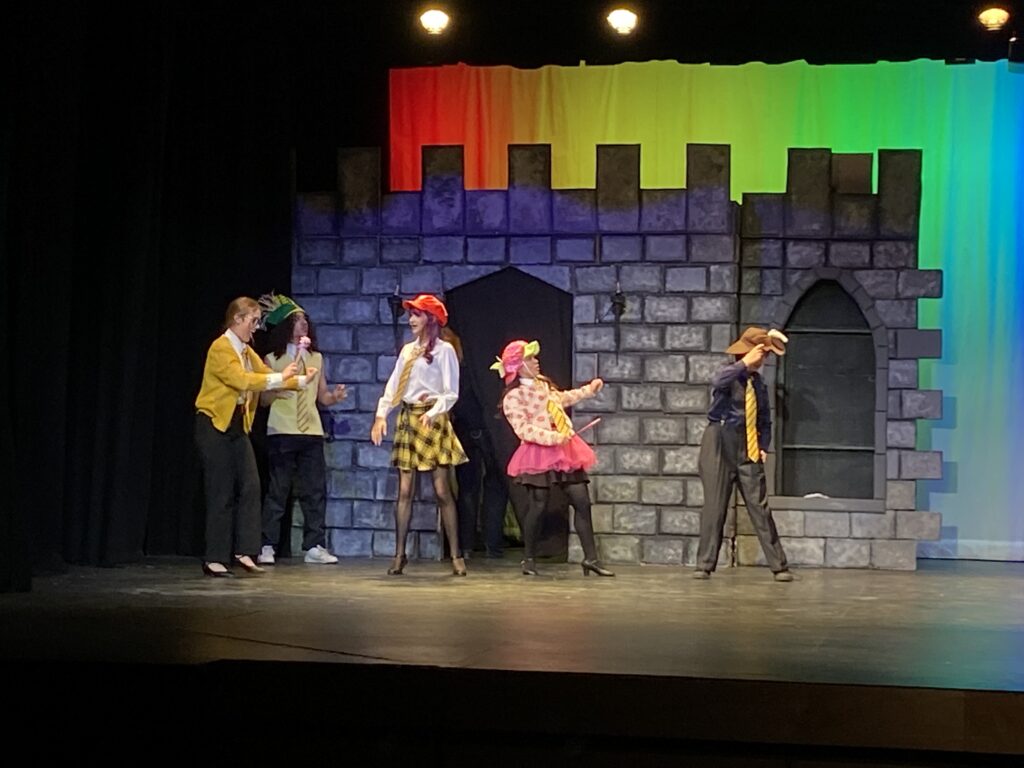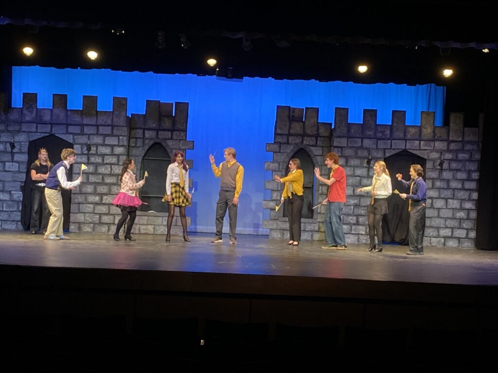 The show is about a boy named Wayne who enjoys playing video games and watching movies (played by senior Emmett Moxon), a nerdy kid named Oliver learning lots at this new school (played by junior Reagan O’Connor), and their mysterious friend Megan who is trying to find her mom (played by junior Maddie Kushner) as well as the other Puffs as they try to solve mysteries, do well in classes, and avoid the scary things that happen while they are there. It starts off with the Narrator (junior Emery Burch) summarizes the original Harry Potter tale, before bringing the audience to the school. We find out that the Puffs are considered the school losers and their goal is to get at least third place in the House Cup. Besides being recluses, they are also notorious for losing house points and failing at most things they try.